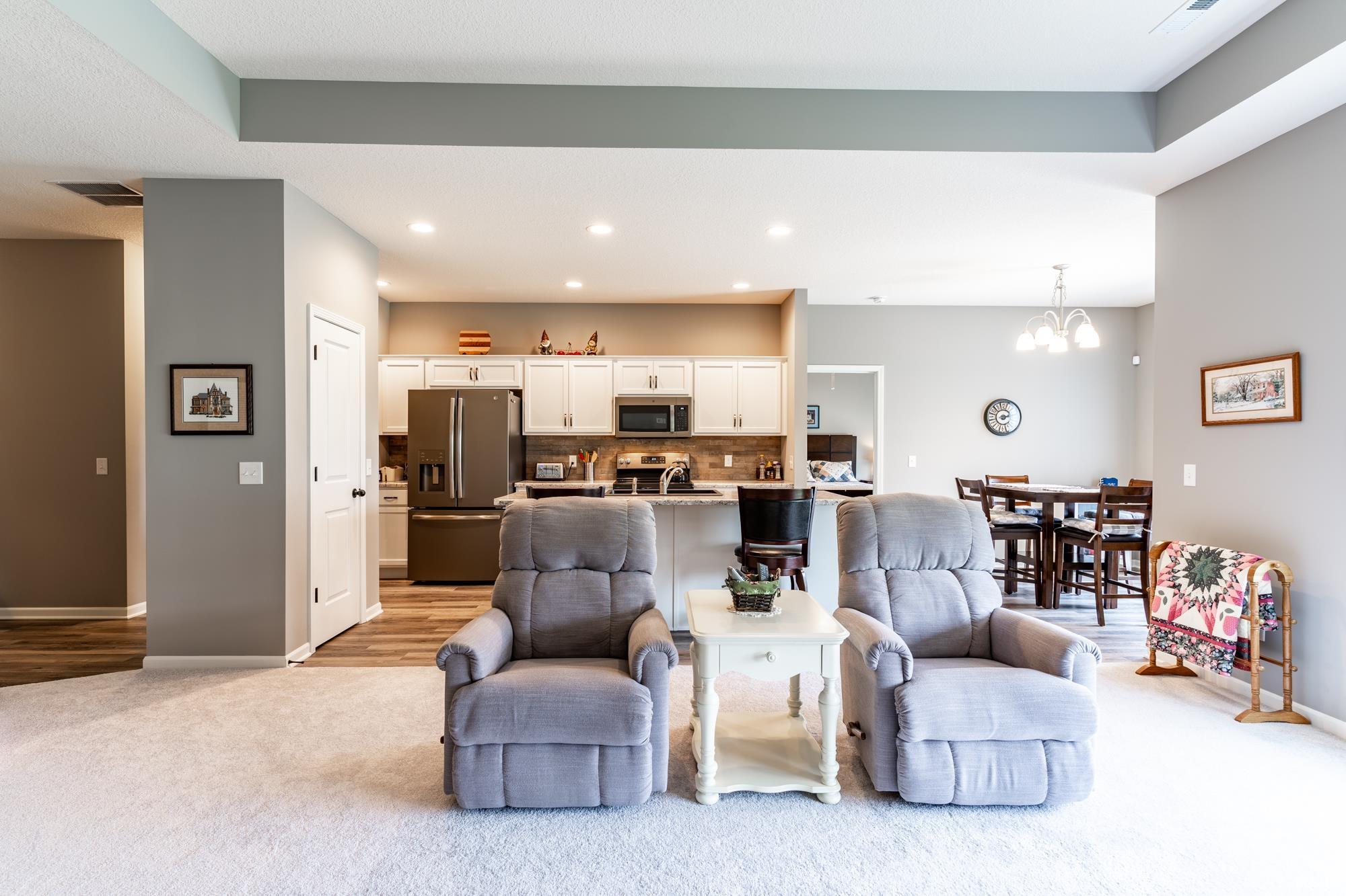 Walk into your better than new 3 bedroom/2 full bathroom split ranch in the sought after Victoria Lakes neighborhood of New Haven! This home features warm vinyl plank wood flooring in the foyer, kitchen, breakfast nook, back hall, laundry room and the master bathroom. This open concept home has a great room with tray ceilings, canned lights and triple windows. The great room opens up to the kitchen featuring an island with breakfast bar, tons of pantry space, stainless steel appliances and a beautiful ceramic backsplash. The master bedroom has a large walk in closet and a bathroom en suite with dual sinks a wonderous walk in shower. The other 2 good sized bedrooms are on the other side of the house with a full bathroom separating them. Off the breakfast nook is a 12 x 12 concrete patio to enjoy your summer nights. The home is beautifully landscaped and also features Simplx Smart Home Technology. Don't miss your opportunity on this gem, set your showing appointment today!!